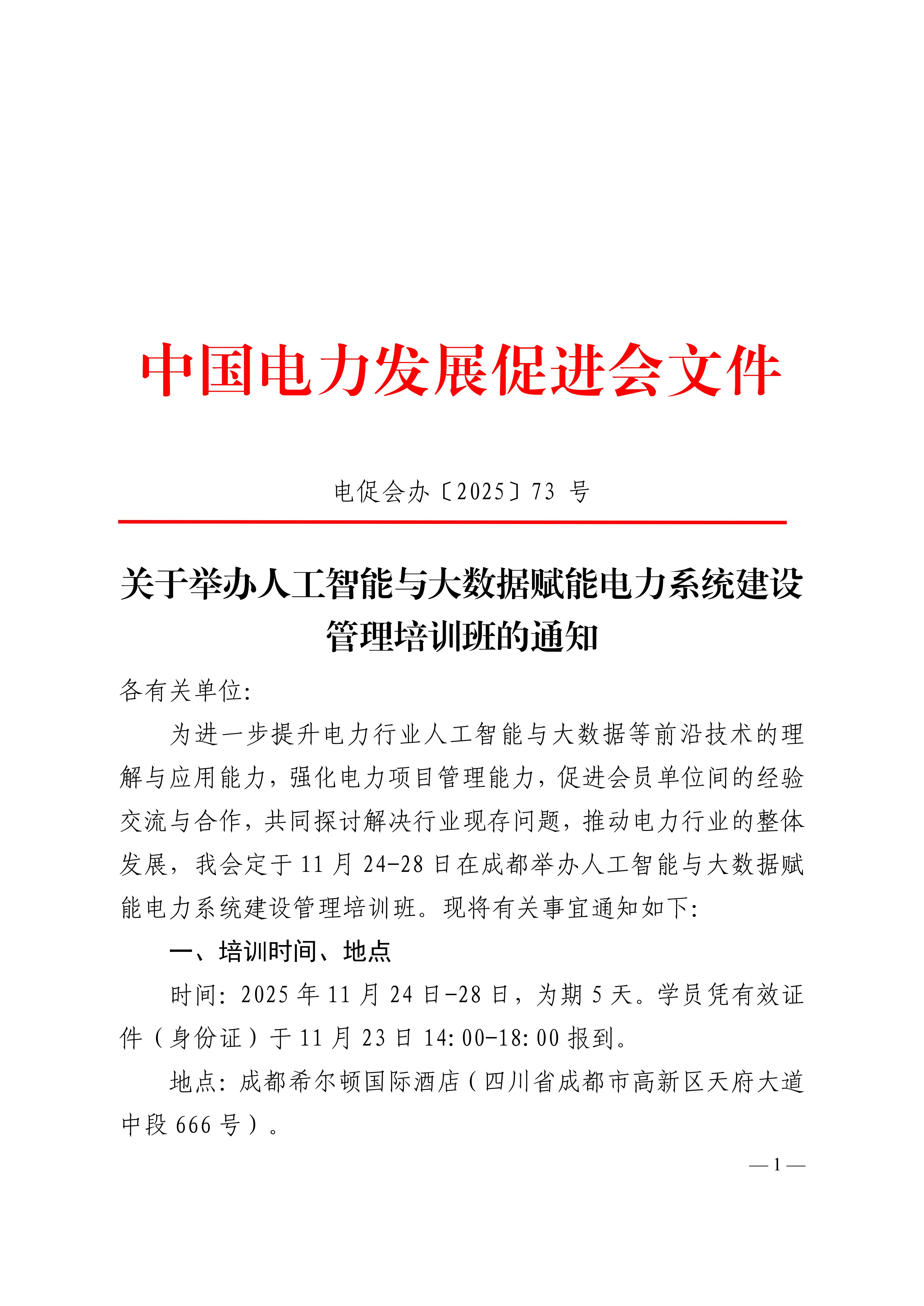 • 關于舉辦人工智能與大數據賦能電力系統建設管理培訓班的通知